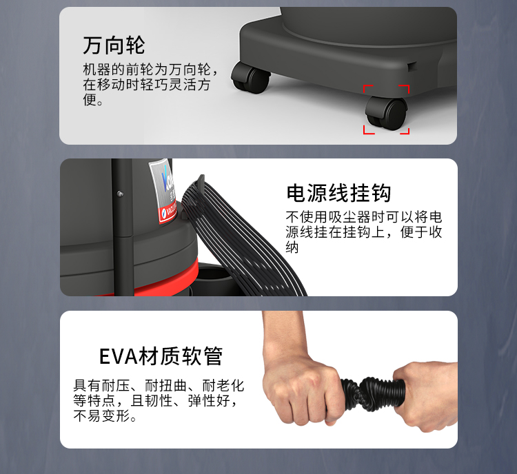 GS-1232是一款工商業型吸塵器,32L集塵桶,配合各種除塵配件使用起來方便??梢杂迷诠I環境中,也可以使用在普通的商業、企業環境。