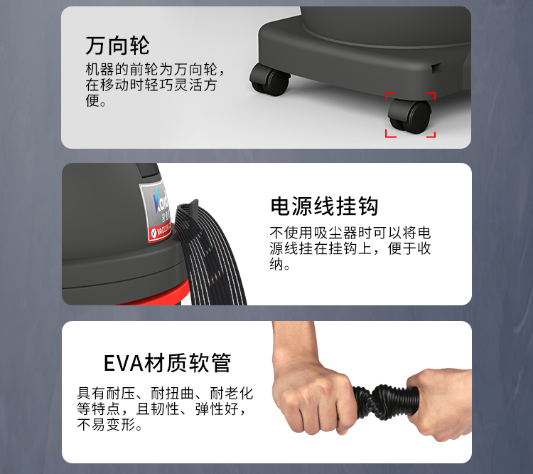 GS-1032是一款工商業型吸塵器,32L集塵桶,配合各種除塵配件使用起來方便。可以用在工業環境中,也可以使用在普通的商業、企業環境。