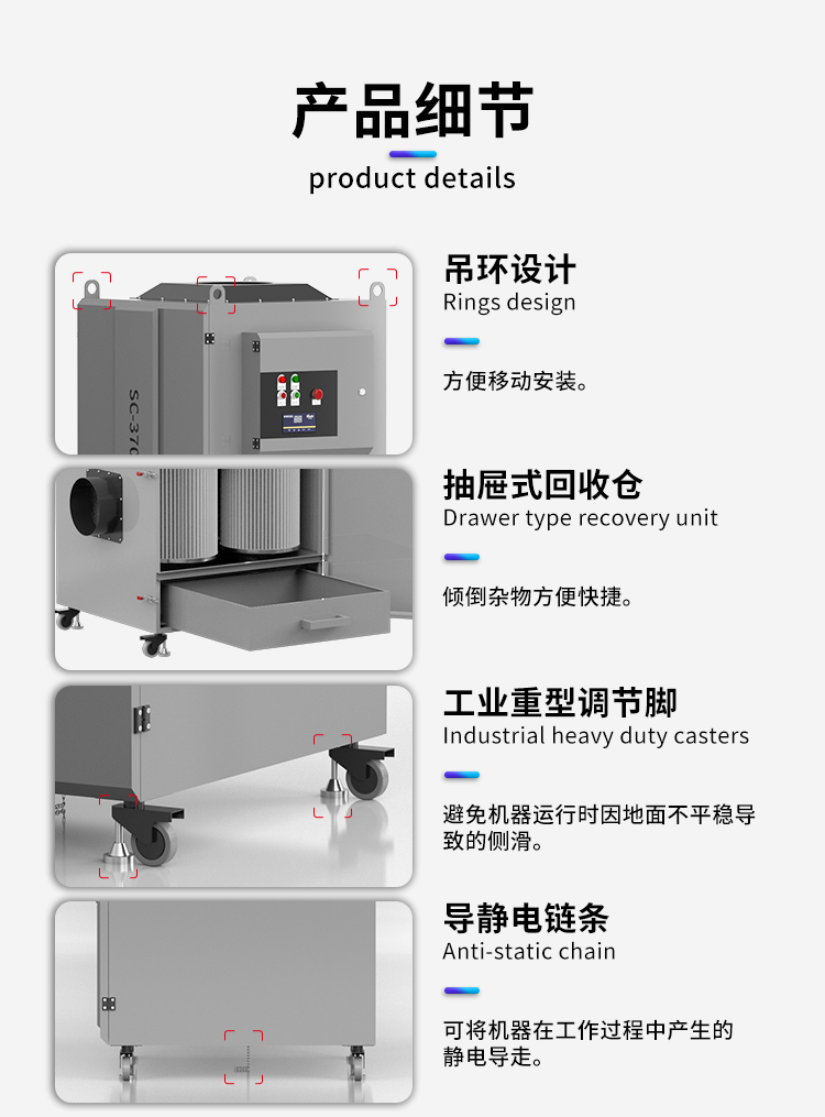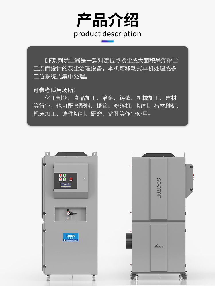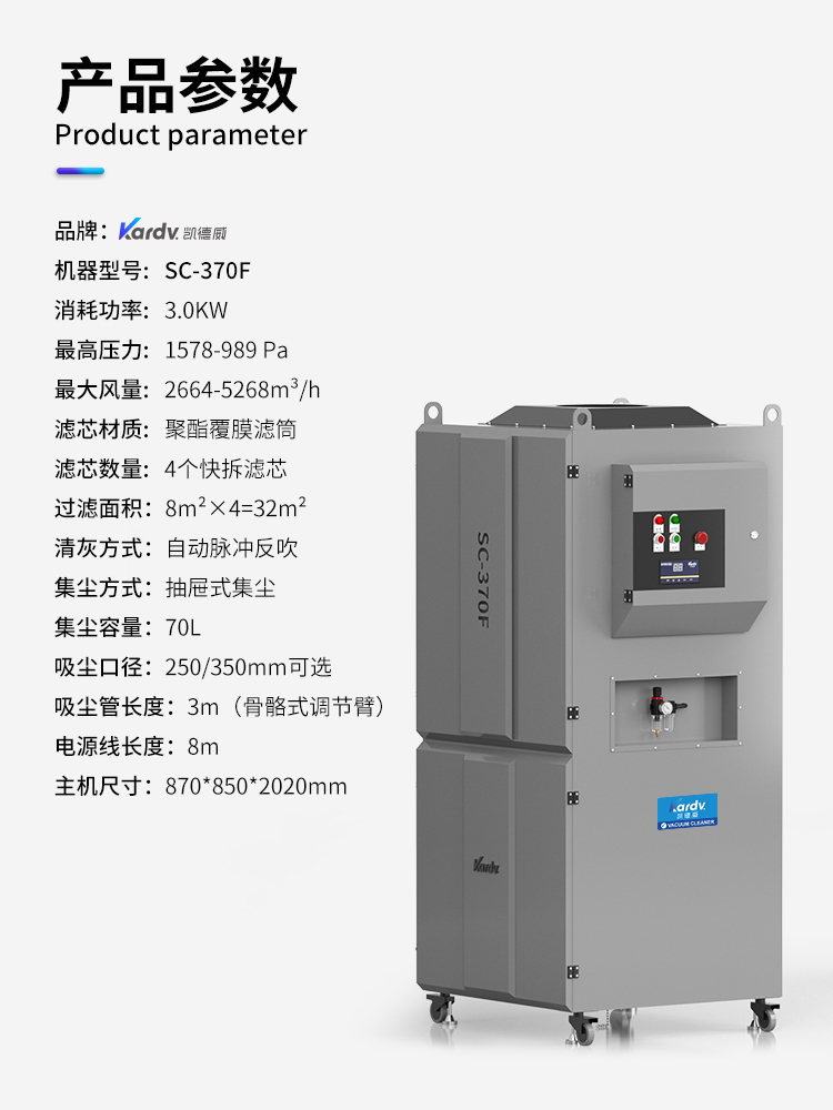 凱德威工業除塵器SC-370,工廠車間用。可參考實用場所:化工制藥,食品加工,冶金、鑄造、機械加工、建材等行業。